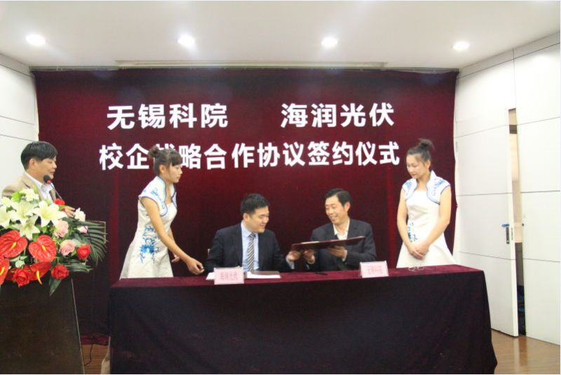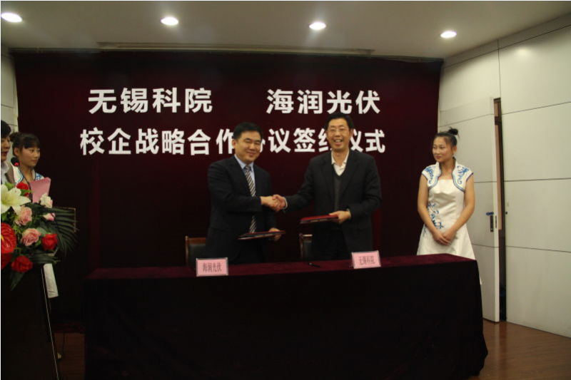 11月16日,海潤(rùn)光伏科技股份有限公司在無(wú)錫市科技職業(yè)學(xué)院與該學(xué)院簽署了《校企戰(zhàn)略合作協(xié)議》。海潤(rùn)光伏科技股份有限公司副董事長(zhǎng)兼光伏總裁徐湘華與無(wú)錫科技職業(yè)學(xué)院副院長(zhǎng)吳雪純代表合作雙方在簽署協(xié)議。海潤(rùn)光伏技術(shù)、生產(chǎn)、人力資源及總裁辦相關(guān)負(fù)責(zé)人及無(wú)錫市科技職業(yè)學(xué)院的部分學(xué)生代表見(jiàn)證了簽約時(shí)刻。
