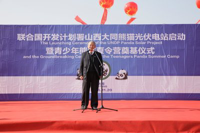 大同2016年11月21日電 /美通社/ -- 2016年11月20日,在第二十二屆聯合國氣候變化大會(COP22)分會的中國現場,全球首個“熊貓電站”啟動暨青少年熊貓夏令 營奠 基儀式在中國九大古都之一、國家新能源示范城市 -- 山西大同正式舉行。聯合國開發計劃署國別副主任何佩德 (Patrick Haverman)與大同市相關單位領導、新能源行業領袖等100余人出席了啟動儀式。