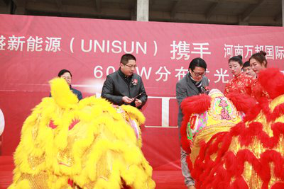 上海和鄭州2016年11月22日電 /美通社/ -- 11月21日,由聯盛新能源集團 (UNISUN) 投資的河南萬邦60MW屋頂分布式項目開工典禮在位于鄭州市中牟縣的萬邦國際農產品物流城舉行。