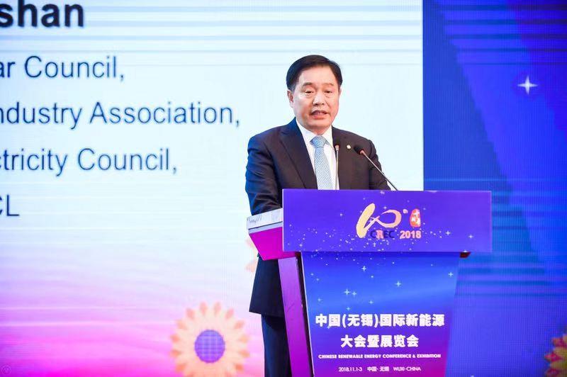 11月1日上午,由中國貿促會、江蘇省政府主辦的“第十屆中國(無錫)國際新能源大會暨展覽會(CREC2018)”舉行開幕式。全球太陽能理事會主席、亞洲光伏行業協會會長、中電聯副理事長、協鑫集團董事長朱共山應邀出席并致辭。