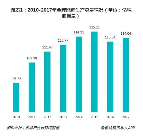 在節(jié)能減排的高度提倡,2017年全球能源生產(chǎn)總量約為114.04億噸油當量,同比增長僅為0.62%。同時,新能源的生產(chǎn)表現(xiàn)越來越出色,占比從2016年的28.49%提升至2017年的32.50%。