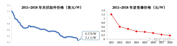 圖:2011——2018年光伏組件、逆變器的價格變化趨勢