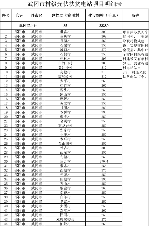 湖南武岡市22.4MW村級光伏扶貧電站項目公示(表)