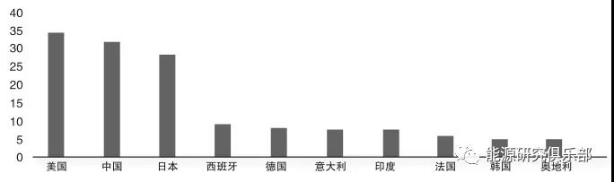 圖3 2018年全球累計運行儲能裝機TOP10國家(單位:吉瓦)