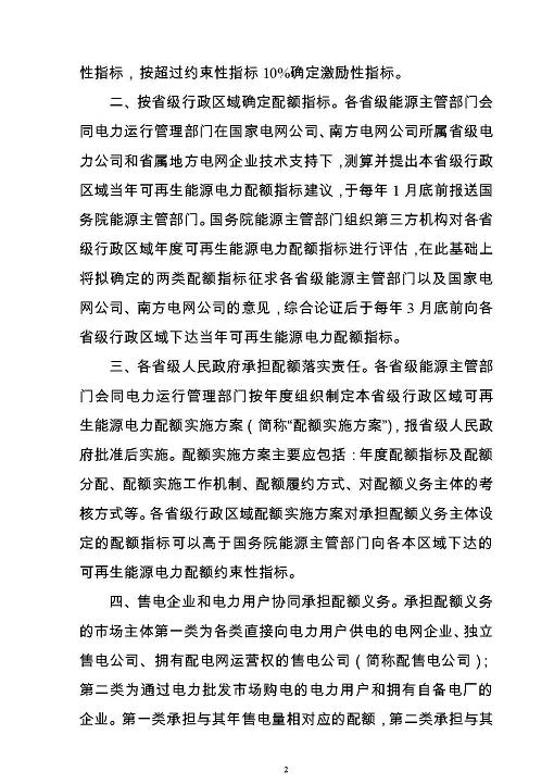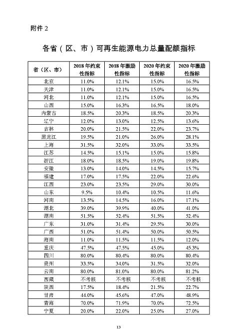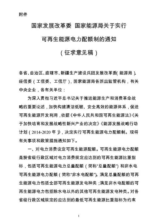 附件:國家發展改革委 國家能源局關于實行可再生能源電力配額制的通知(征求意見稿)