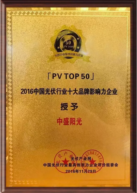 “2016中國(guó)光伏行業(yè)十大品牌影響力企業(yè)”