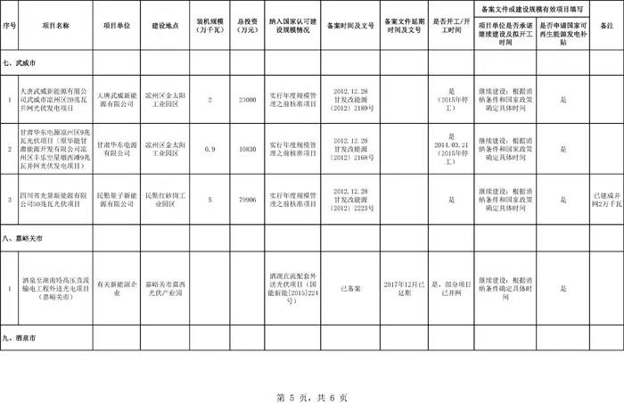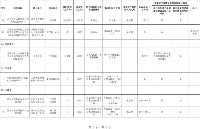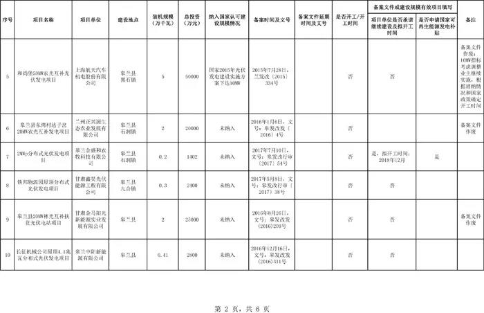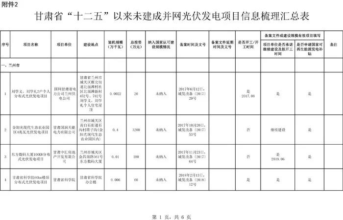 附件:2.甘肅省“十二五”以來未建成并網光伏發電項目信息梳理匯總表