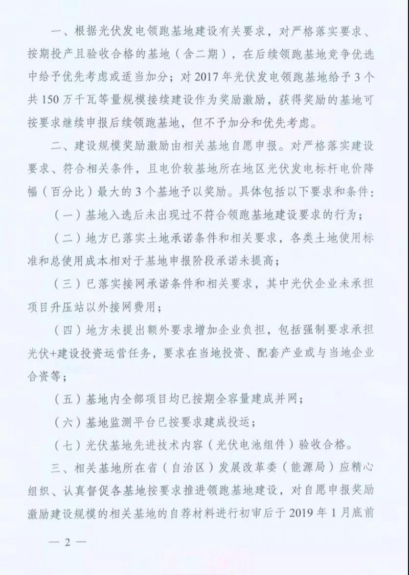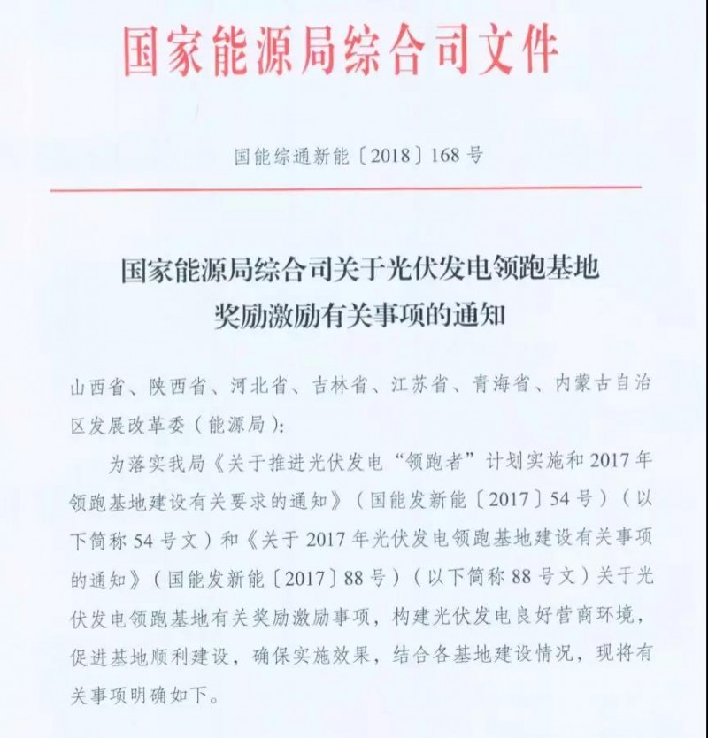 近日,國家能源局綜合司發布《關于光伏發電領跑基地獎勵激勵有關事項的通知》,對于嚴格落實要求、按期投產且驗收合格的基地(含二期)在后續領跑基地競爭優選中給予優先考慮或適當加分;對2017年光伏發電基地給予3個共150萬千瓦等量規模連續建設作為獎勵激勵。