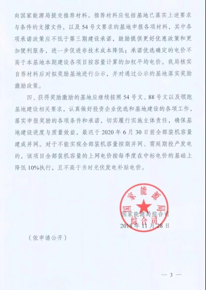 國家能源局日前已向內蒙古、山西、陜西、河北、吉林、江蘇、青海7省區下發了《關于光伏發電領跑基地獎勵激勵有關事項的通知》,通知明確了第三批領跑基地獎勵的有關事項。